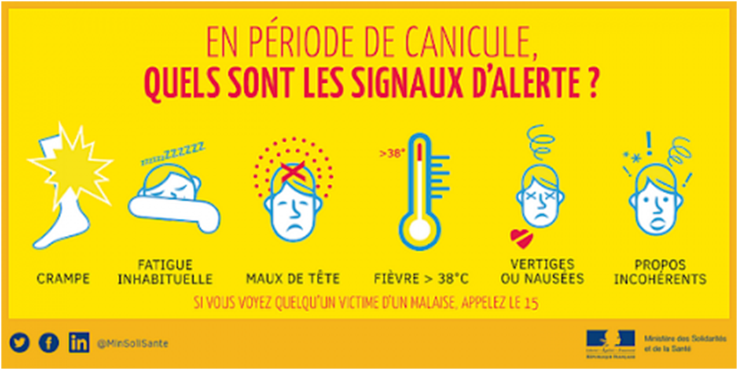 La canicule (caractérisée par une chaleur excessive, un faible écart de température entre le jour et la nuit, et une durée d’au moins trois jours) peut provoquer des malaises, mettant ainsi la santé en danger.